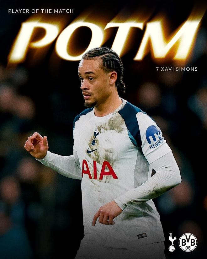 熱刺官方宣布,哈維-西蒙斯當(dāng)選球隊與多特蒙德一役隊內(nèi)最佳球員。